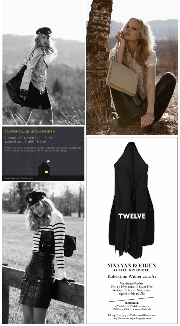 Nina van Rooijen Kollektion Winter 2010/11 – TWELVE, Präsentation und Verkauf: Freitag, Samstag und Sonntag, 26. bis 28. November, täglich 11 bis 19 Uhr, Zeithalle, Im Viadukt 14, Viaduktstrasse 59, 8005 Zürich