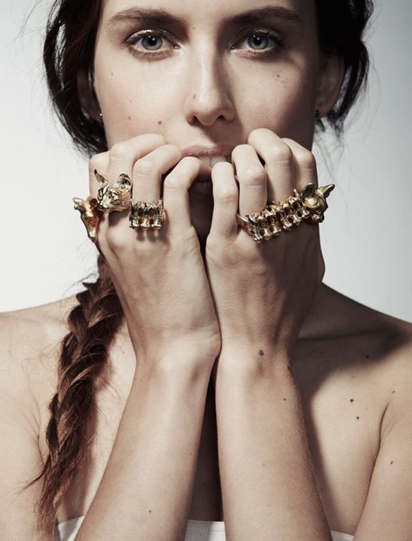 Naaa, liebe Vera, jetzt nur nicht Fingernägel kauen, kein Grund zur Nervosität, hier sind alle ganz nett, dürfen wir vorstellen, das ist Vera Balyura, und wirklich nervös ist, wer schon vor dem 14 Lebensjahr von der Ukraine nach New York gezügelt ist, um im Big Apple als High-Fashion-Model zu arbeiten, wohl auch nicht. Nun macht Vera mit ihrem Label VERAMEAT Schmuck, wilde Tiere, scheue Rehe, süsse Schosshunde, Vampirgebisse und allerlei Skurriles, und es erstaunt keinen Moment, dass etwas anders tickende Geister wie Tilda Swinton oder Michel Gondry VERAMEAT lieben. Och, und gleich liebst du mit, denn zu ihrem Giraffen-Ring hat Vera geschrieben: «Once I was called a Giraffe in high school & now I’ve the last laugh. Life is funny sometimes.» Huh. So. Schön. Go, girl, go!