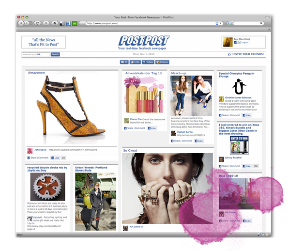 PostPost – your real-time facebook newspaper, und wie das ganz genau funktioniert, erklärt dir das Filmli unten, hoch, schon ganz schön praktisch, dieses verrückte Internet …