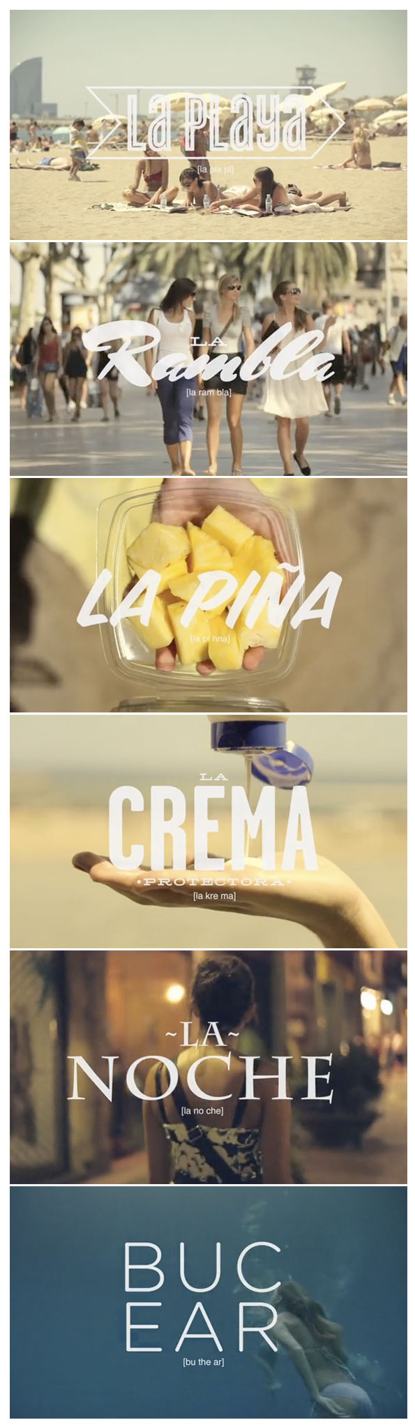 Ahhh, gleich biste wieder blutjung und hast nie Voci gelernt und wirst als knallharte Strafe nach Barcelona geschickt, por favor, bitte nicht! Hach, ein Hoch auf die EF Sprachreisen, nur diese Klassenzimmer, die haben wir irgendwie nie gefunden … egal, denn EF hat ganzen Generationen auch auf anderen Wegen eine klasse Education geboten. Aber: supi Emotionen – grottenhässlicher Brand. Das hat man sich schon als Teenager gedacht. Doch nun haben Gustav und Niklas Johansson und der Typograph Albin Holmqvist wirklich hübsche Spots mit dem typischen Sprachreisli-Feeling gemacht. Achtung, gleich bist du wieder 18 und … ¿Hablas español?