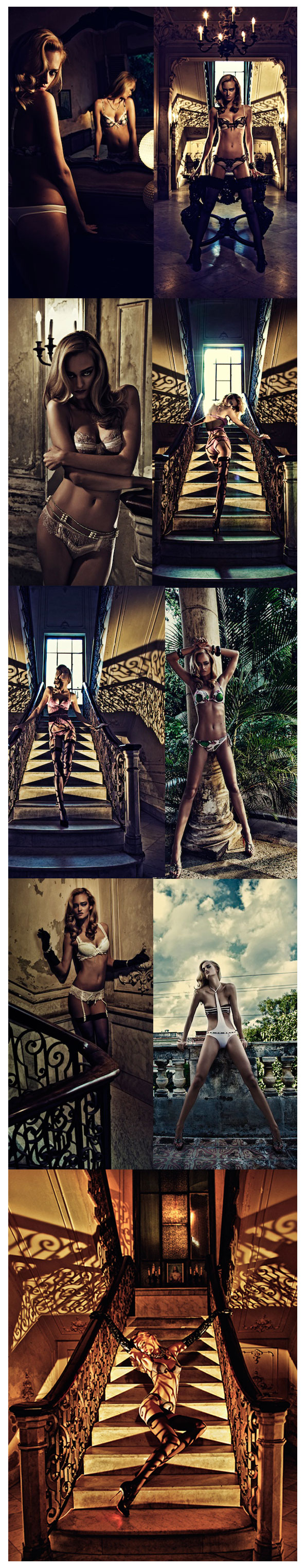 Wer räkelt sich so nackt und wild, es ist die Nadine auf dem Bild! Okay, der Reime-Wochenzenith ist somit erreicht und wir können uns getrost den nackten Tatsachen widmen: Nadine Strittmatter hat sich für Wild Orchid Lingerie, die russischen Anwort auf Victoria’s Secret, auf die Stiegen geschmissen und wir müssen sagen: Babuschka, Babuschka, du erfüllst uns ganz schön mit Stolz, dat is doch mal wieder ein Schweizer Export! Na gut, Männer denken beim Anblick dieses Bildes eh nur an eins. Genau: Schatz, wir brauchen für den Treppenbereich sofort ein neues Beleuchtungskonzept!