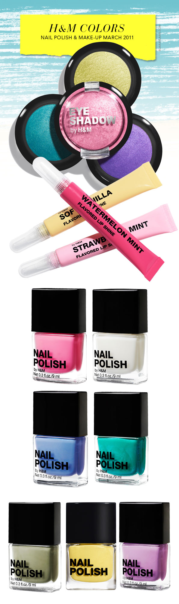 H&M Nagellack & Make-up Spring 2011, Lacke zu CHF 6.90, Make-up zwischen CHF 4.90 und 7.90, ab sofort erhältlich, www.hm.com