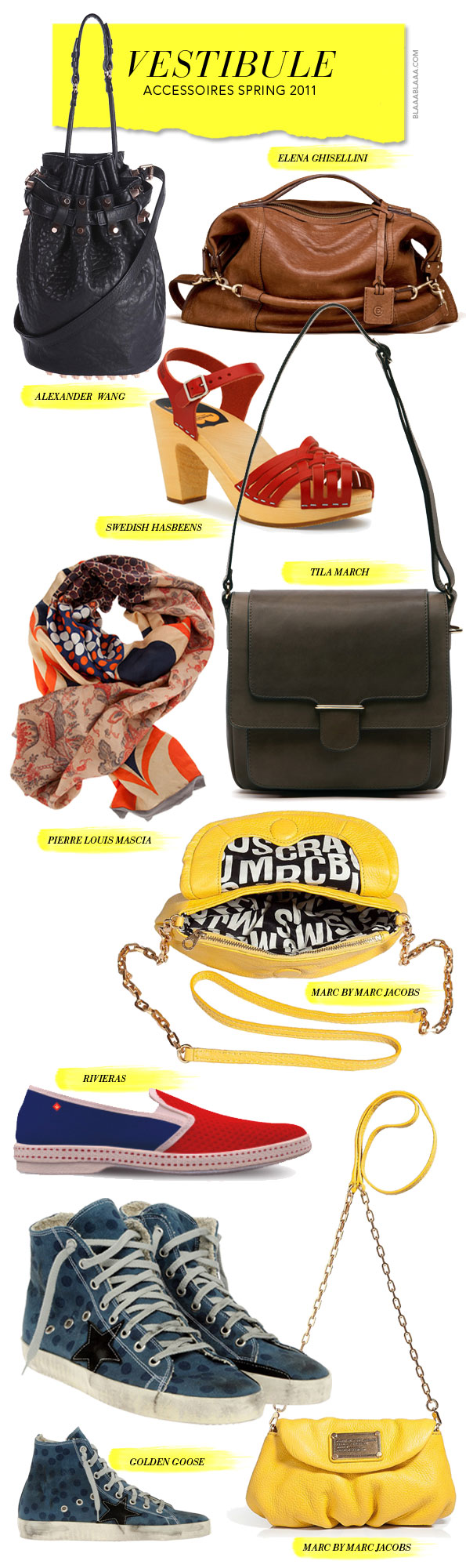 Vestibule Accessoires Spring 2011, Neues von Alexander Wang, Elena Ghisellini, Tila March, Marc by Marc Jacobs, Rivieras und Swedish Hasbeens in verschiedenen Farben, wunderschöne Schals vom Illustrator Pierre Louis Mascia, Golden Goose Sneakers etc., alles bei Vestibule, St. Peterstrasse 20, 8001 Zürich, www.vestibule.ch
