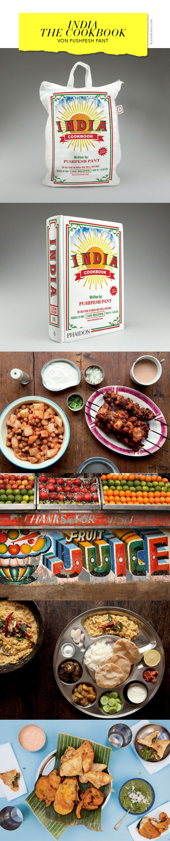 «India – The Cookbook» von Pushpesh Pant, Hardback, Englisch, 960 Seiten, 75 Farbabbildungen, 160 Farbfotografien, erhältlich z.B. zu EUR 28,95 bei www.amazon.de