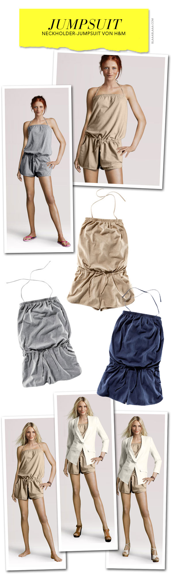 Jumpsuit von H&M, Neckholdermodell in Jersey, erhältlich in 3 verschiedenen Farben zu CHF 14.90 bei www.hm.com, und zum Ankleideraum-Tool geht’s hier lang, natürlich auch auf www.hm.com