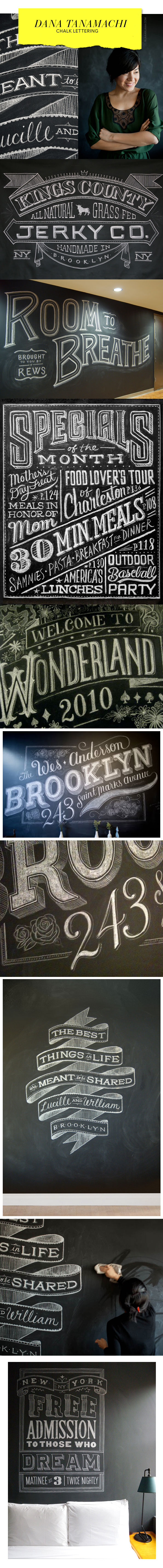 Dana Tanamachi Chalk Lettering, alle Infos auf www.danatanamachi.com, und jetzt gucken wir ihr bei der Arbeit über die Schulter, hach, es war noch nie so schön, wem an der Tafel zuzusehen: