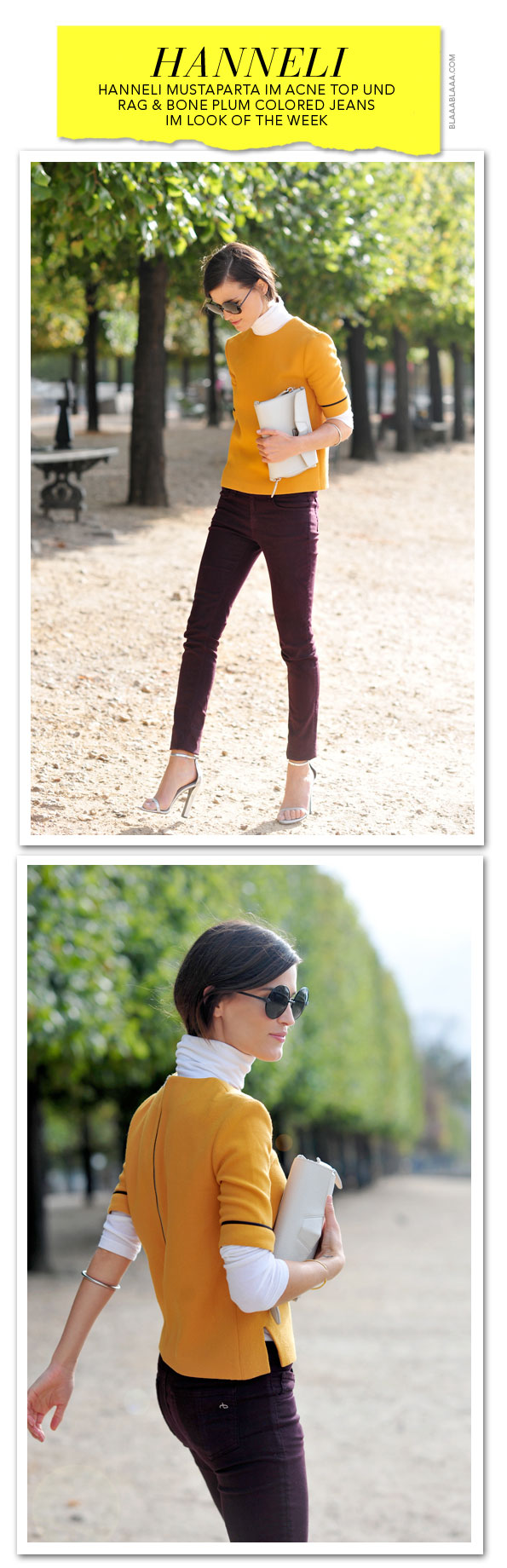 Hanneli Mustaparta im perfekten Pflaume-trifft-Aprikose-Look, alle Accessoires etc. auf www.hanneli.com