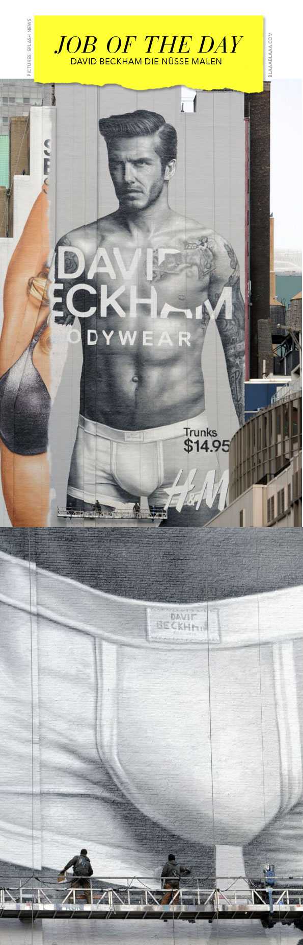 Job of the Day: David Beckham die Nüsse malen, und hallo, da stimmt doch was in der Ausbeulung schon auf der Fotovorlage nicht, Mann, Mann, Mann!