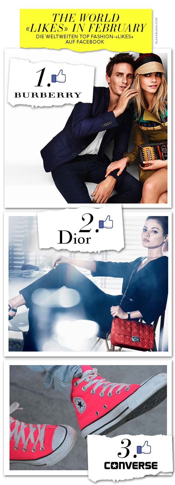Die weltweiten Top 10 Fashion Pinnwand/Wall-«Post-Likes» auf Facebook im Februar 2012