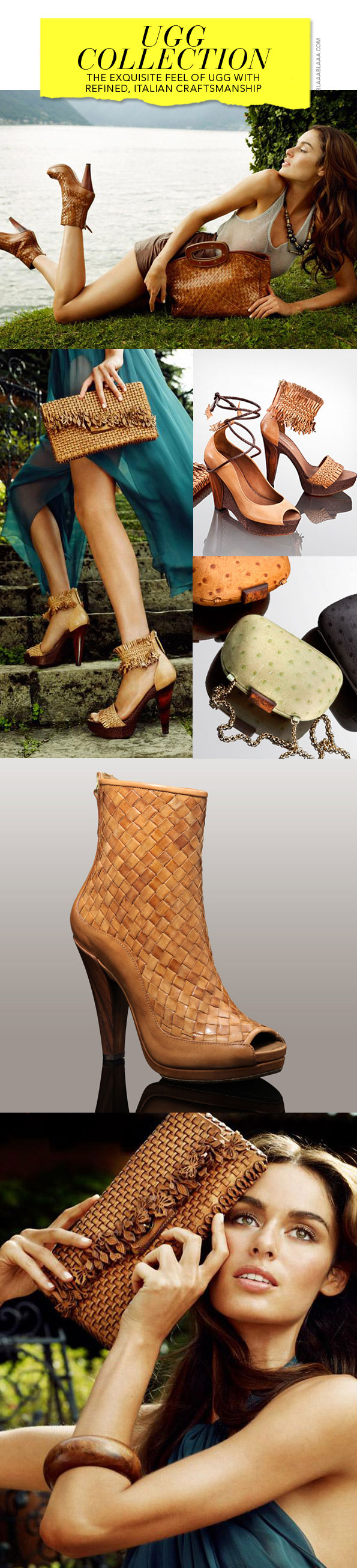 UGG Collection Spring 2012, Schuhe und Handtaschen im neuen Look, was geblieben ist, sind die stolzen Preise, z.B. Cynthia Clutch zu $795, Onorina Heel zu $850, alles auf www.uggaustralia.com