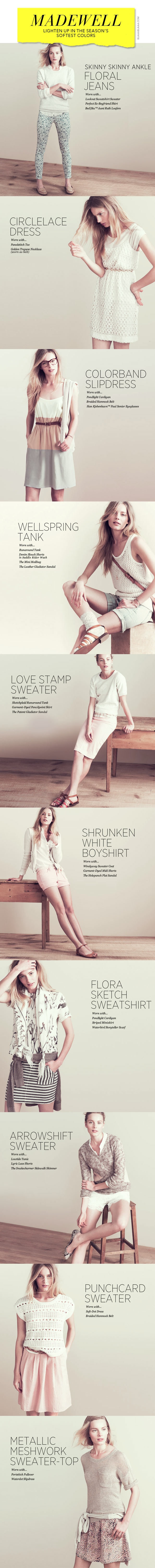 Das wird dir langsam alles zu bunt, du brauchst ne Pause vom Color-Blocking und Brighten-Up? Dann nimm das Lighten-Up, Schnäuzelchen, Madewell zeigt hier wunderhübsch, wie das geht. Und ohne hübschen Strick und grobmaschigen Häkelschick geht gar nix, gosh, hat es da ein paar nette Outfits, fühlst du dich stylingtechnisch auch gleich so erhellt? Wie die hellste Kerze im Leuchter? Äh, nee, erleuchtet heisst dat. Oder beides? Erhellt und erleuchtet? Uuuh, wenn das so weitergeht, legst du glatt eine Zweitkarriere als Nachtischlampe hin, Darling.