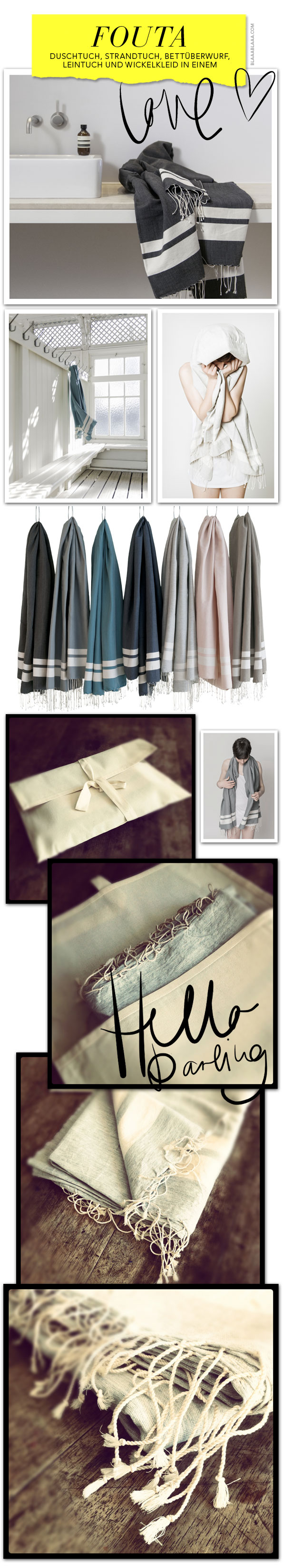 Na, wenn das mal nicht zur exakt richtigen Zeit kommt, yeah, Sonne!, Wärme!, Frühling!, und wo setztema uns denn jetzt hin? Richtig, auf das wunderhübsche Tuch von fouta, das sich super handlich zusammenfalten lässt, überall hineinpasst, und Duschtuch (100% Baumwolle, absorbiert ungewöhnlich gut Wasser), Strandtuch (nimmt kaum Sand auf), Bettüberwurf, Wickelkleid, Schal, ja was du auch immer von einem Tuch willst, in einem ist. Tja, der Label-Gründerin Sarra Ganouchi, welche Wurzeln in Tunesien und in der Schweiz hat, liegt die gute Beziehung zum Tuch eben quasi im Blut. Und nicht nur das, beim Kauf eines Tuchs förderst du auch Familienbetriebe und soziale Institutionen in Tunesien und in der Schweiz. We like!