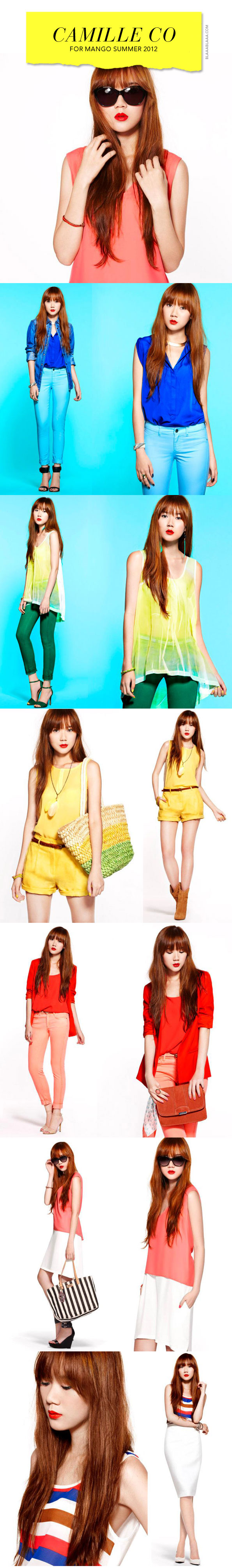 Und die nächste bitte, das Bloggerin-ich-bin-auch-ein-Model-Karussell dreht sich ja mittlerweile so schnell, dat kann einem bei so viel Farbstoff schon mal ein bissrl auf den Magen schlagen. Also halten wir mal rasch an, stopp, langsam: Das ist ist Camille Co, der neuste Familienzuwachs bei der spanischen Modekette mit Süssfrucht-Garantie, Mango, und Camille darf fürs Haus die Key-Trends der Sommer-Kollektion präsentieren. Alles klar? Brauchst du ein Farb-Rennie? Nö? Na dann ist ja alles im gelb-rot-blau-weiss-grünen Bereich.