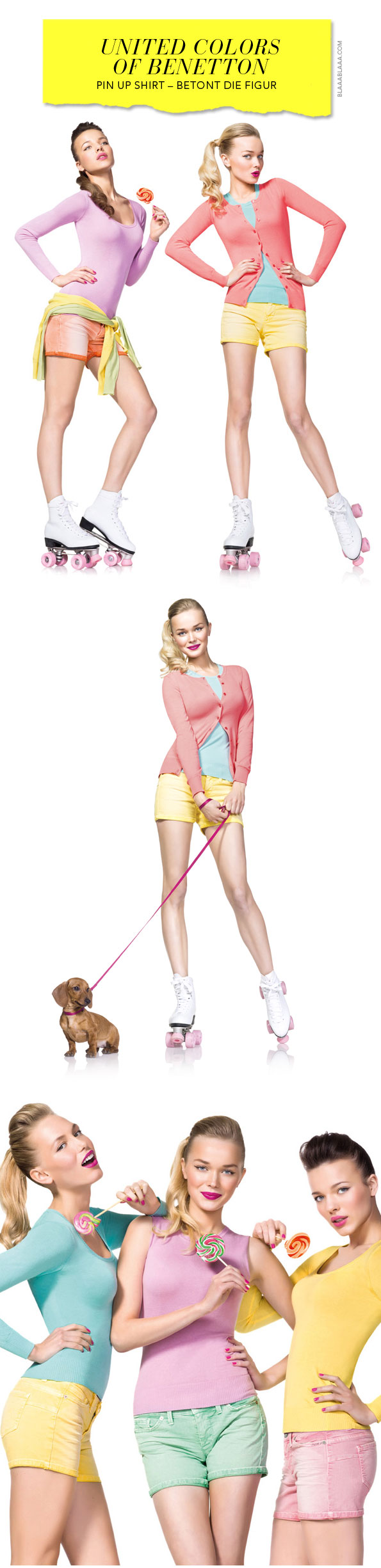 WTF! «PIN UP ist ein Shirt, das von United Colors of Benetton konzipiert wurde, um die Kurven zu betonen und die Weiblichkeit hervorzuheben» Mal ehrlich, ist das die italienische Antwort auf schwindende Umsätze und vom Aussterben bedrohte Ladenlokale? Man möge es den Chefstrategen des italienischen Familienimperiums verzeihen, denn was verkauft sich bei dem Dilemma besser, als ein bisschen südländisches Kurvenöl aus leichter Baumwolle? Darf denn Zitrone, Minze, Lila und Sorbet Sünde sein?