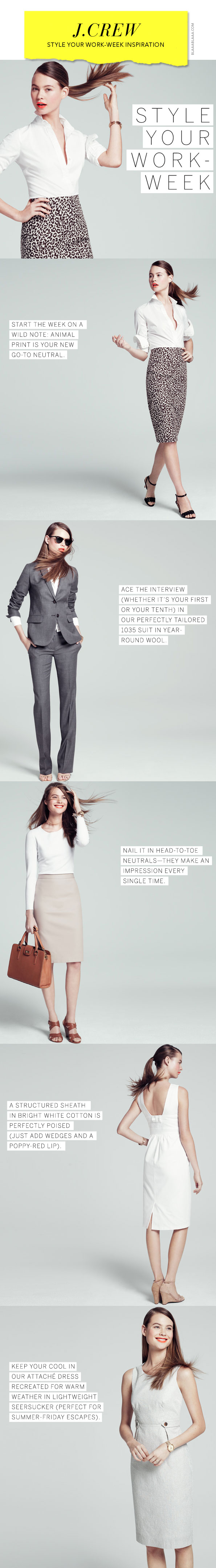 Style your Work-Week Inspiration, gesehen bei J.Crew, jetzt mit praktischem Flat-Rate Shipping für CHF 12.–, www.jcrew.com