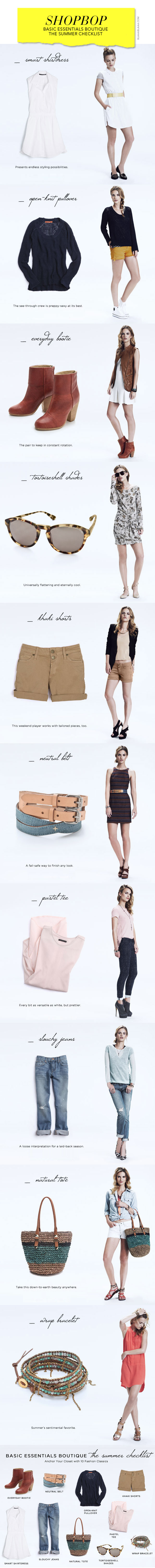 Shopbop Basic Essentials Boutique The Summer Checklist, alles auf www.shopbop.com