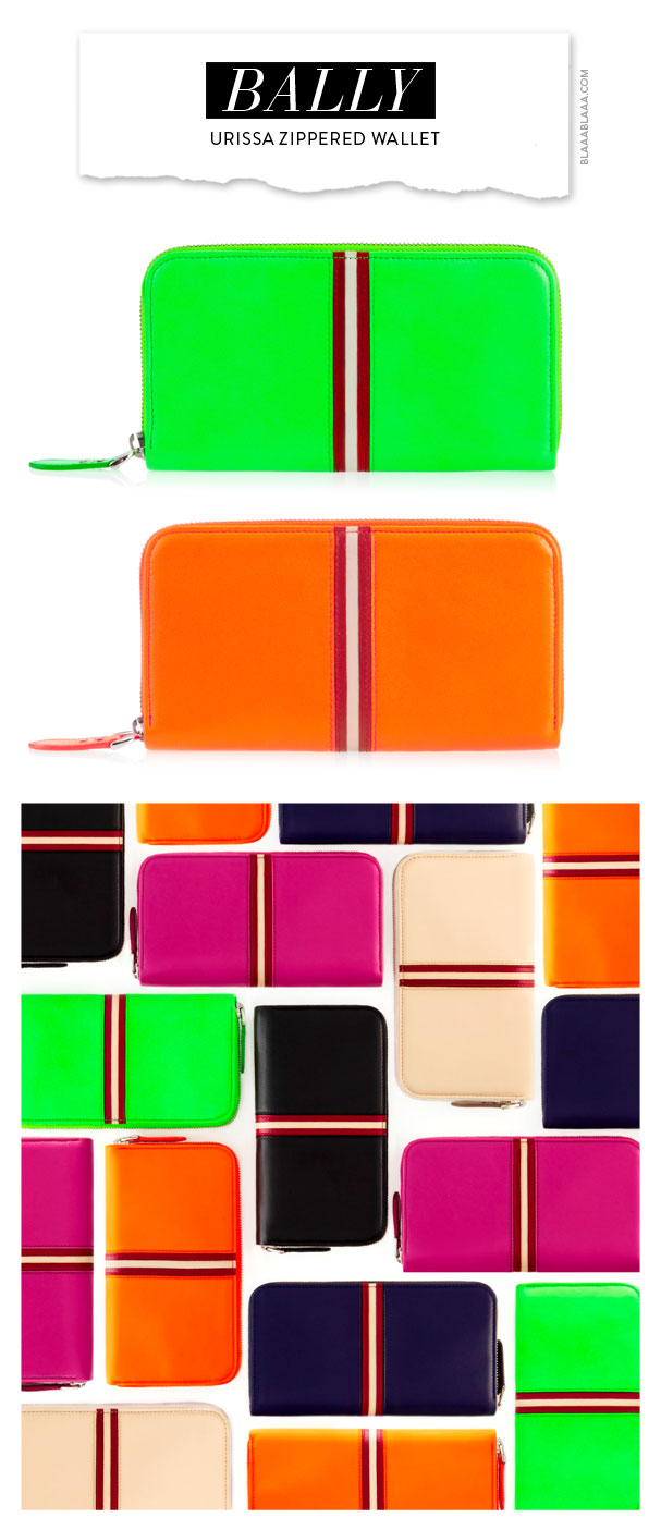 Bally Urissa Zippered Wallet, Reissverschluss-Geldbörse mit dem berühmten Bally-Trainspotting-Streifen, hergestellt aus weichem Vollleder, erhältlich ab sofort zu CHF 350.– in einer Vielzahl leuchtender Farben, www.bally.com