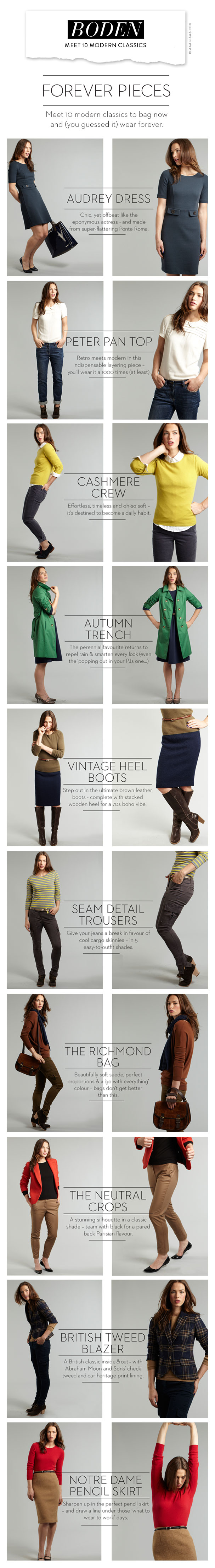 Boden «Meet 10 Modern Classics», das britische Label «Boden» hat 10 moderne Klassiker-Looks zum alltäglichen Gebrauch zusammengestellt, www.boden.co.uk