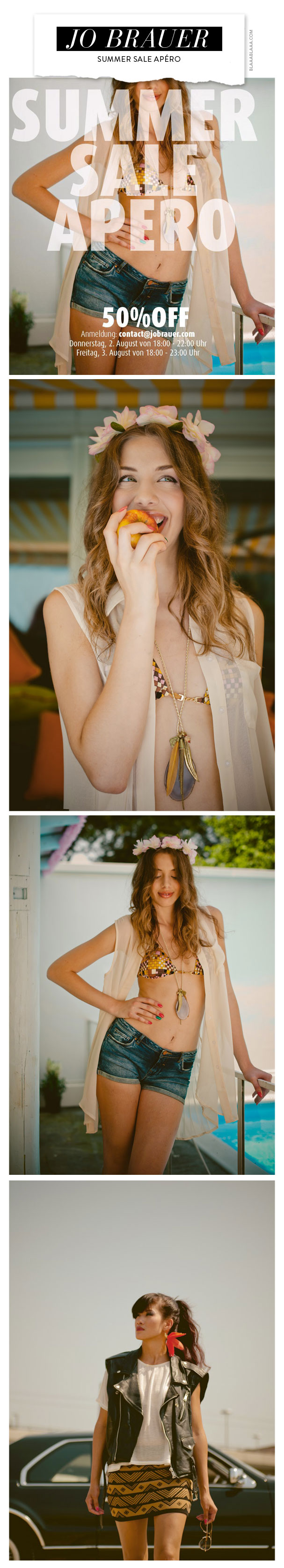 Jo Brauer Summer 50% Sale Apéro, Donnerstag, 2. August 2012, 18 – 22 Uhr, Freitag, 3. August 2012, 18 – 23 Uhr, Anmeldung unter contact(at)jobrauer.com, www.jobrauer.com