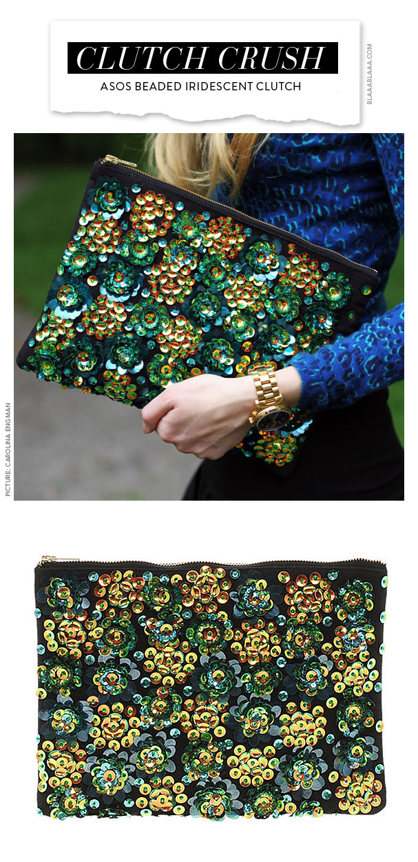 Clutch-Crush: Zugreifen!, schillernde Seerosen-Clutch mit Perlenbesatz aus der ASOS Collection zu EUR 49,76 bei www.asos.de