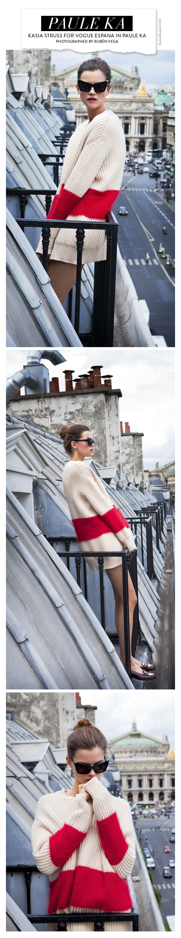 Kasia Struss for Vogue Espana in Paule Ka, photographed by Rubén Vega, Brille von Alexander Wang, ganze Story «Los 7 Dias 7 Looks» auf www.vogue.es, Pullover aus Merinowolle zu EUR 580.– auf www.pauleka.com