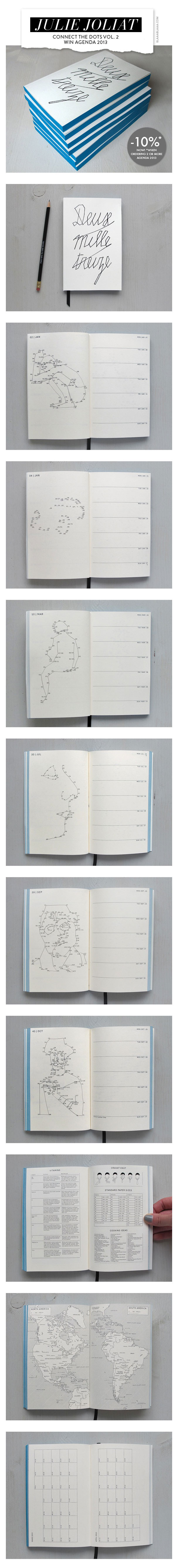 Win Agenda 2013 – Connect the Dots Vol. 2, Limited edition (300), English, printed in black, matte cover, 12×19 cm, 152 pages, blue borders and black satin ribbon, Shop & Infos unter joliat.net