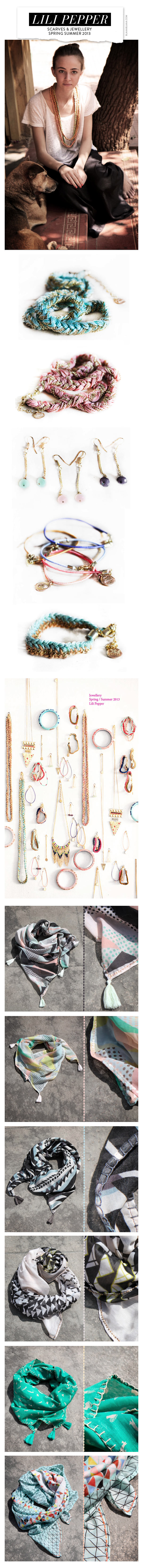 Scarves und Jewellery von Lili Pepper Spring Summer 2013, Schals zu CHF 69.–, Schmuck zwischen CHF 19.– und 59.–, erhältlich ab Mitte nächster Woche bei www.lilipepper.ch und bei Bits & Bobs, Zurlindenstrasse 230, 8003 Zürich, www.bits-and-bobs.ch