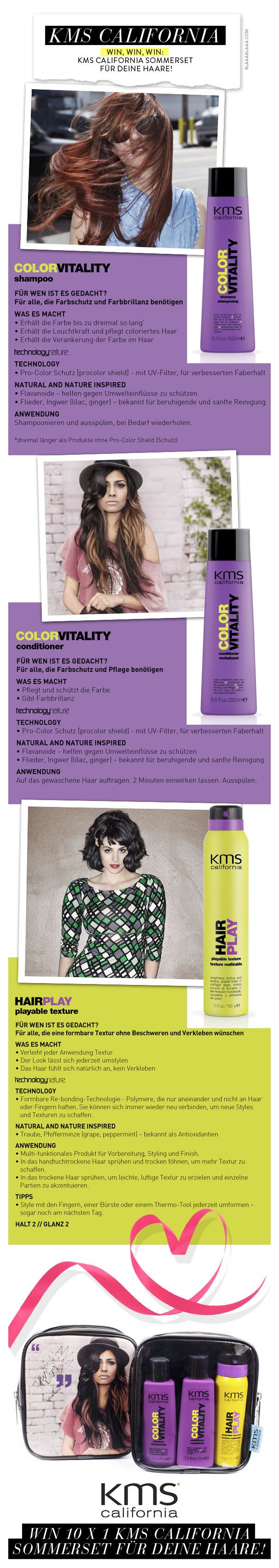 Win 10 x 1 KMS California Sommerset für deine Haare, mehr Infos unter www.kmscalifornia.com oder auf Facebook, YouTube und Twitter!