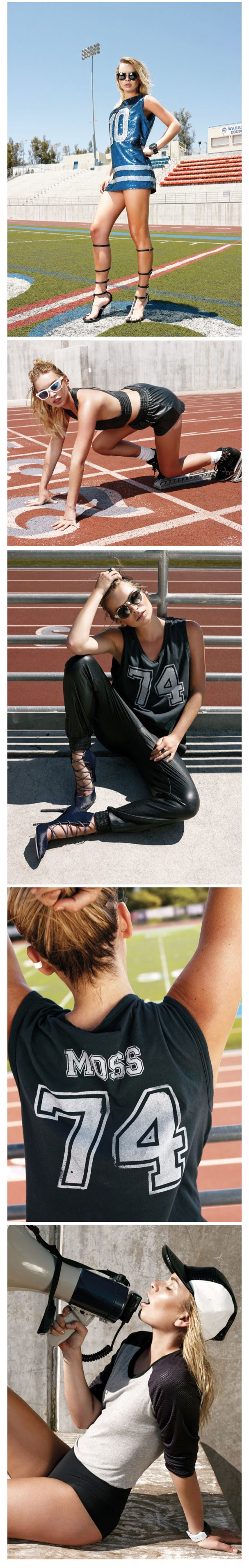 Na hallo, die Labels «Revolve Clothing» und «Lovers + Friends» haben zusammen eine Nummer geschoben und das Ergebnis heisst «First Place» und ist eine 15teilige Capsule Collection «which focuses on athletic pre-fall designs». Und natürlich präsentiert sie kein normales Model. Ne, dieses hübsche Kind hier heisst Alexandra Spencer und ist «blogger and model». Ja, so macht man das heute. Und das ist kein uninteressantes Phänomen, hey, vielleicht sind in ein paar Jahren zum Beispiel Atomphysikerinnen der letzte Schrei und dann werden die Lookbooks und Werbekampagnen voller Atomphysikerinnen sein, «nuclear physicist and model», you know, und die Atomphysikerinnen kämen vor lauter Shootings gar nicht mehr dazu, zu … äh, was Atomphysikerinnen eben mit Atomen und Physik so tun zu tun. Und … phu, in was für eine Nummer sind wir hier geraten? Kurz: Da kommen ein paar gute Teile mit Nummern drauf. Weil, yes, die Nummer mit den Nummern läuft auch im Herbst 2013 noch. So. Und jetzt müssen wir ein paar crazy Physik-Dinge mit Atomen tun.