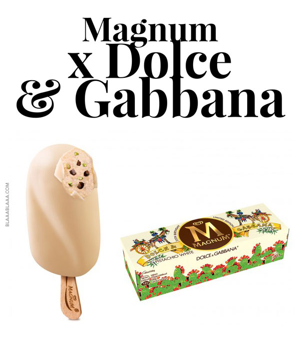 Oh Schleck, die nimmersatte Kollaborationswut der Modebranche treibt ja immer wildere Blüten, aber diese hier wird diesen Sommer gepflückt: Die neuste Errungenschaft in Sachen crazy Zusammenarbeit kommt aus der sündhaft leckeren Eisdiele Magnum, deren Produkte-Entwickler sich zum 25-jährigen Jubiläum die süssen Dienste (der Name ist wohl Programm) von Dolce & Gabbana sicherten. Das Ergebnis der exquisiten Verschmelzung kann man sich ab Anfang Juni 2014 auf der Zunge zergehen lassen: herrlich weisser Schokomantel trifft auf dunkle Schokostückchen – gespickt mit Pistazien, und das alles in hübscher sizilianischer Verpackung serviert. Allora, lange Rede kurzer Sinn, her damit!