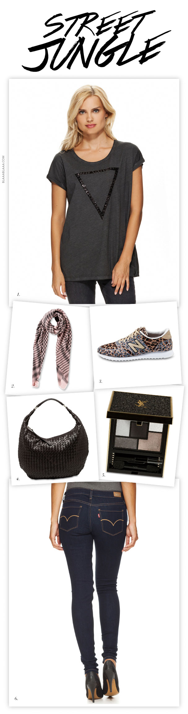 Du bist eher so der Streetstyle-Typ mit Glam-Einschlag? Et voilà, New Balance mit Leo, Rockstar-Shirt ohne debile Aufschrift, ein Stück Kopenhagen-Chic mit Becksöndergaard, etwas sophisticated Flechtoptik und rein in die perfekt sitzende Jeans: