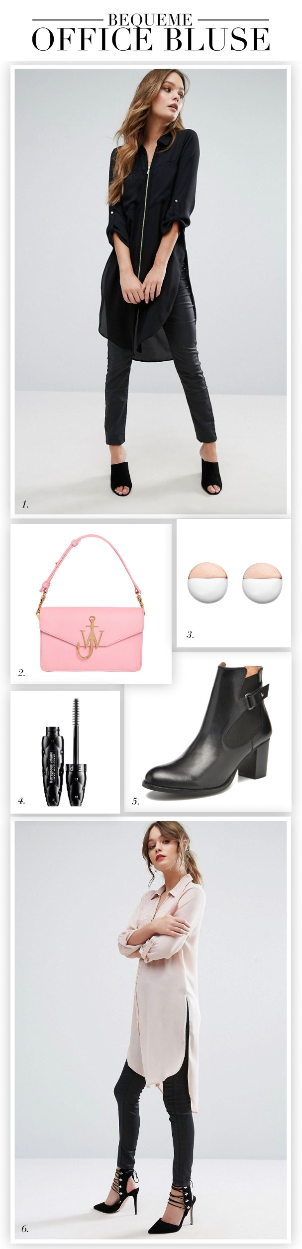 Ob in sattem Schwarz oder in Pastell-Rosa, mit dieser langen Bluse geht’s schick und bequem in den nächsten Sitzungsmarathon.