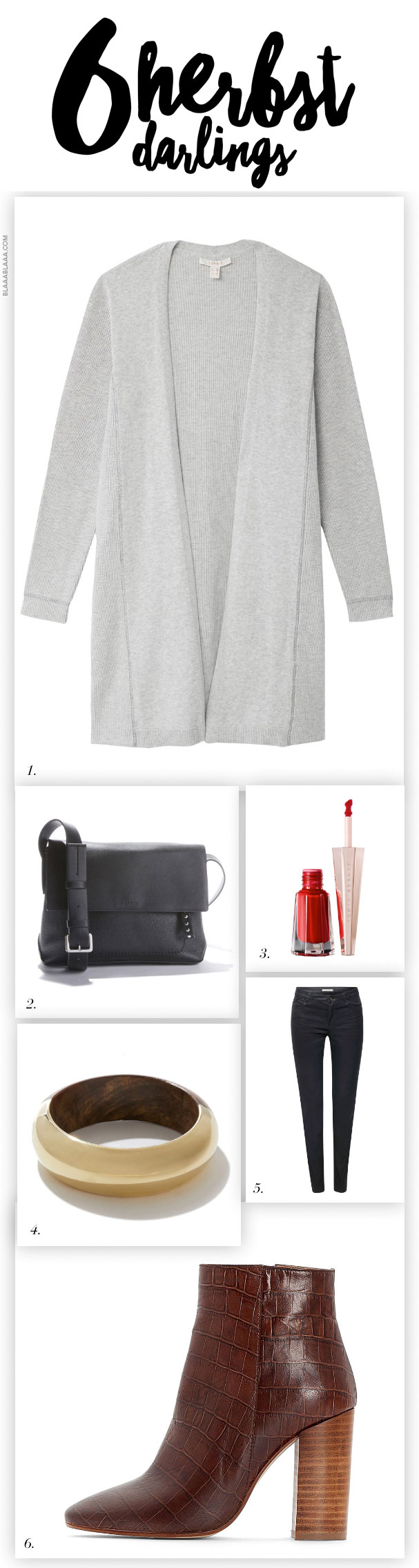 Genau, Schatz, der Longcardigan aus Feinstrick (siehe Nr. 1) ist doch ein echtes Schätzi, aber auch den weiteren 5 Herbst-Darlings kann man, n’est-ce pas, nur schlecht widerstehen!