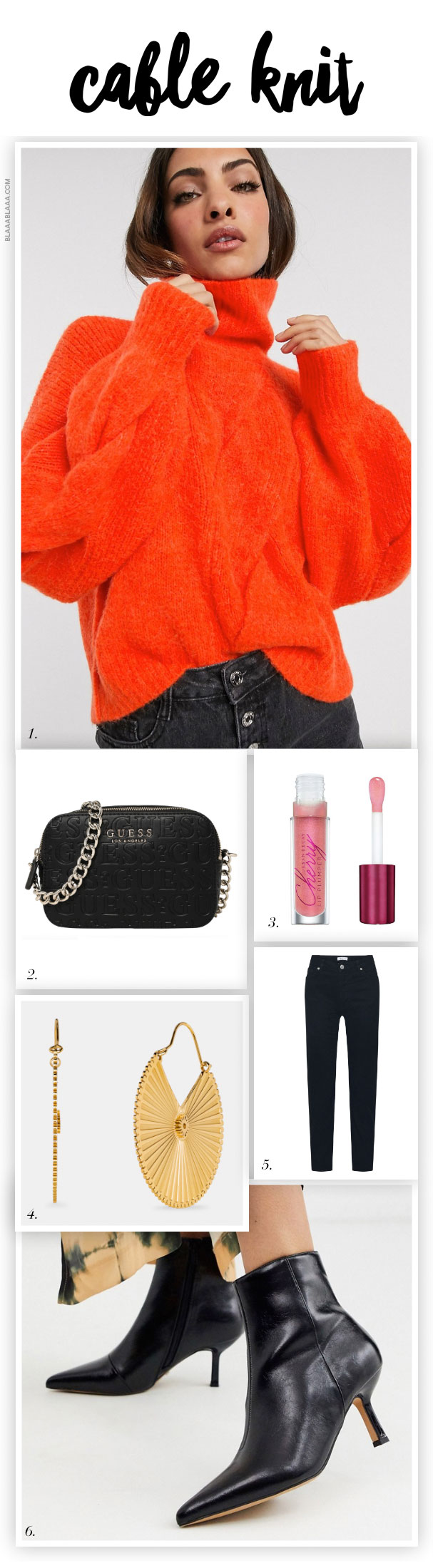 Arriva, Schatz, mit dem Grobstrickpullover mit Rollkragen und Zopfmuster von Y.A.S (siehe Nr. 1) bringst du diesen Dienstag mächtig Farbe ins satte Grau!