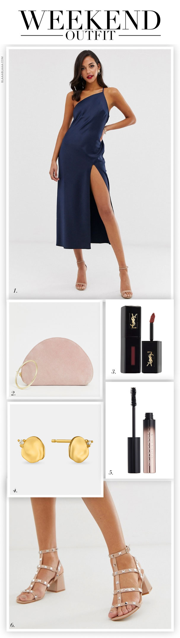 - ASOS DESIGN – Marineblaues Midaxikleid aus Satin mit One-Shoulder-Träger und drapierter Rückseite, gratis Versand & Retoure, kein Zoll [Get It Here!]