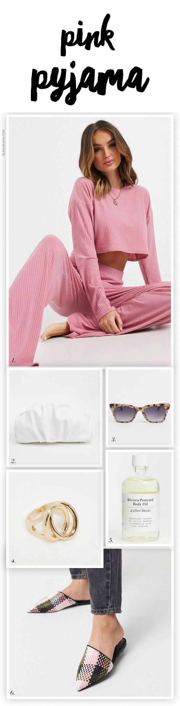 Here we go, Schatz, mit dem Soft Rib Pyjama Set in Pink von PrettyLittleThing (siehe Nr. 1) geht’s von der Couch, ratzfatz, ins Home Office und zurück!