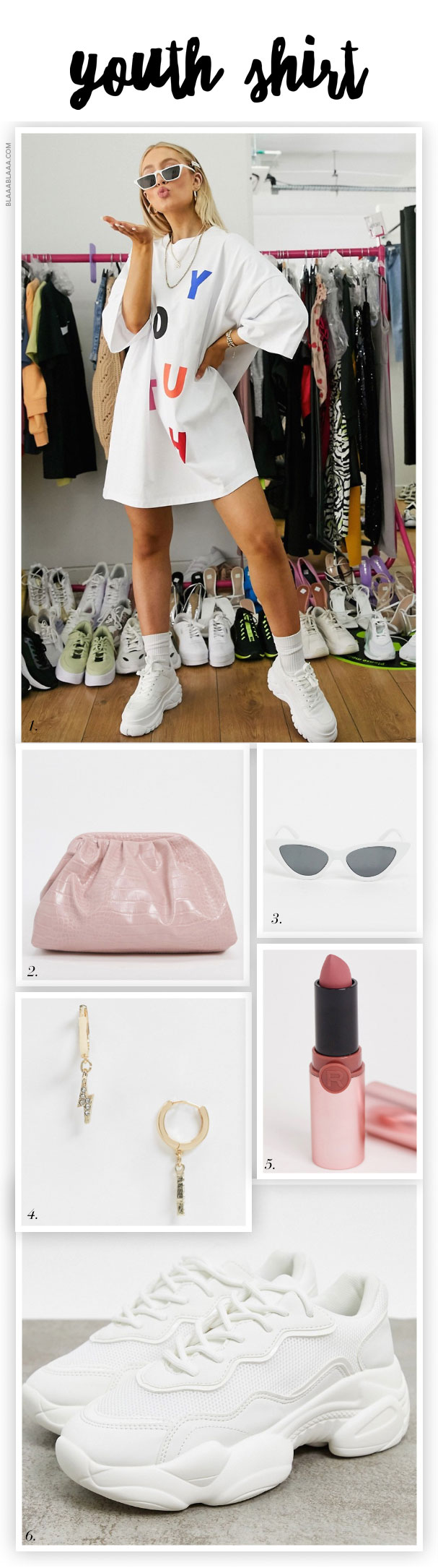 Genau, Schatz, das FAST-SELLER Oversize-T-Shirt-Kleid in Weiss mit «Youth»-Schriftzug von ASOS DESIGN (siehe Nr. 1) ist eine Jugendsünde wert!