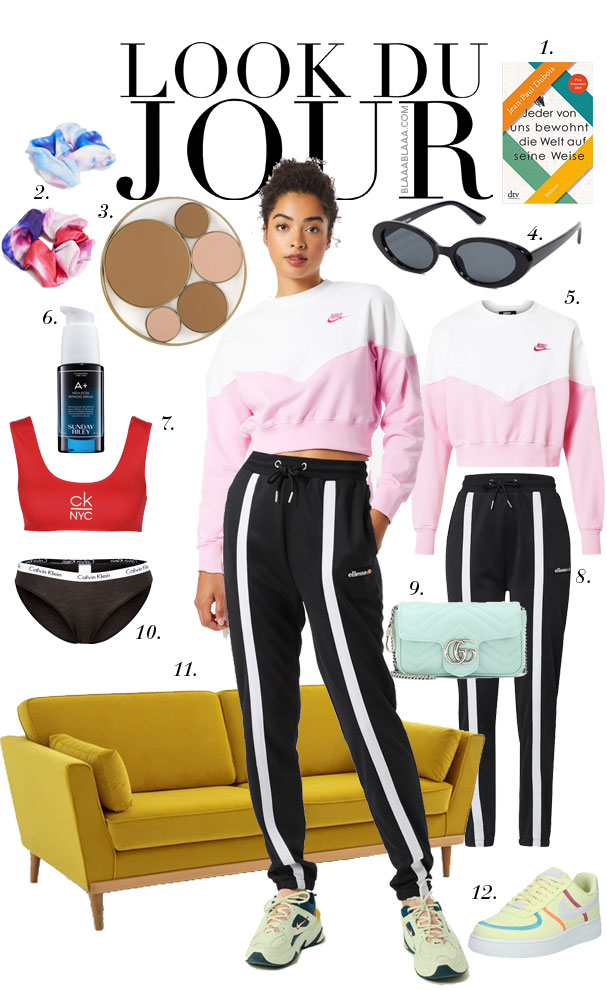 Kurz und Bund zum Wochenstart: hello kurzer Nike Sweater, du bist aber ganz ein süsses Stück, und yeah, diese Streifen machen mich auch ein bissi verrückt: salü ellesse Trainerhose mit elastischem Bund, darin fühlt man sich auch ohne Sport sofort topfit und gesund!