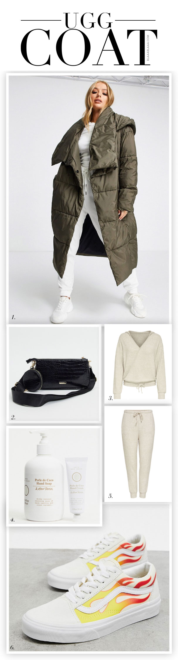 Huch, Schatz, kuschelig wärmendes UGG-Wohlfühl-Ambiente gibt’s jetzt nicht nur für die Fusserl, sondern auch als wattierten Mantel (siehe Nr. 1).