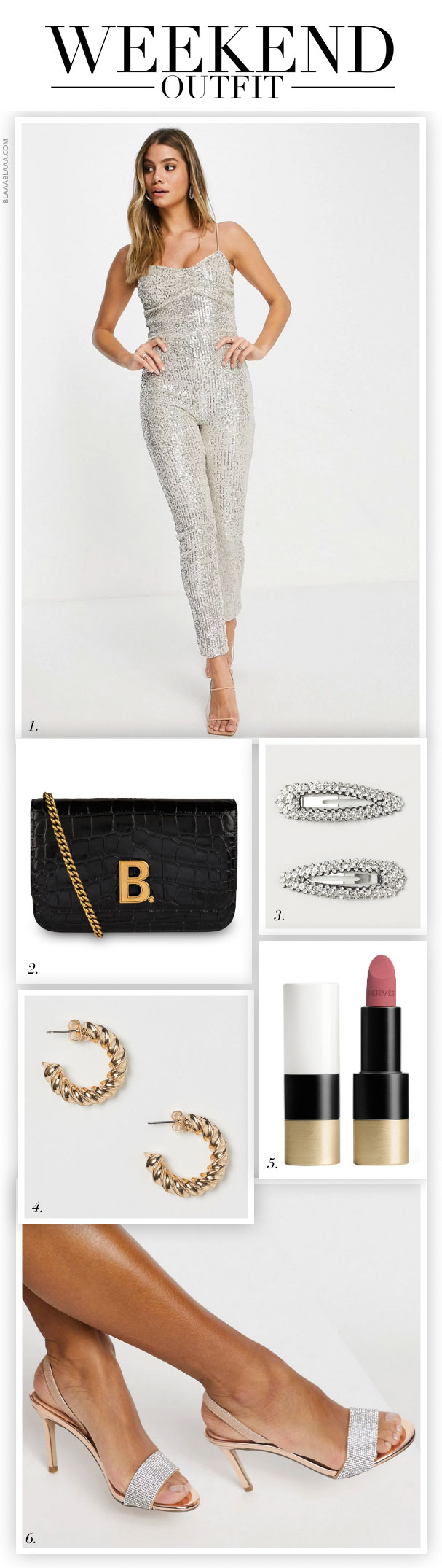 - ASOS DESIGN – Silberfarbener Einteiler mit Paillettenbesatz und Raffungen an der Vorderseite, gratis Versand & Retoure, kein Zoll [Get It Here!]