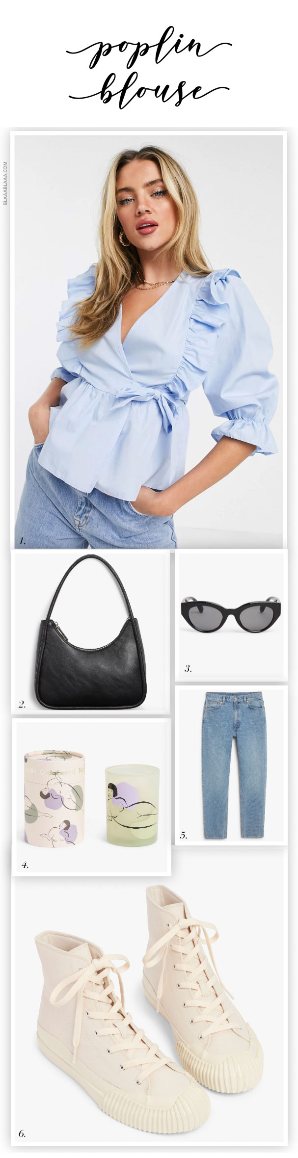 Et voilà, Schatz, mit der FAST-SELLER Popeline-Wickelbluse in Hellblau mit Rüschendetail von New Look (siehe Nr. 1) wickelst du alle um die Taille!