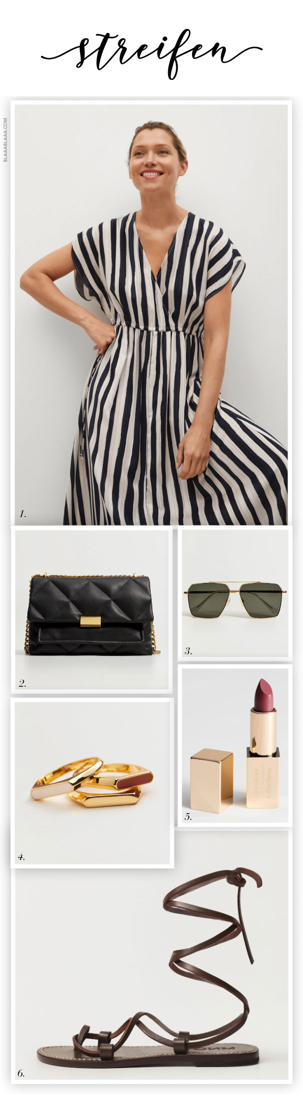 Et voilà, Schatz, mit dem ausgestellten Kleid mit Streifen von Mango (siehe Nr. 1) geht’s heute auf einen luftigen Streifzug!