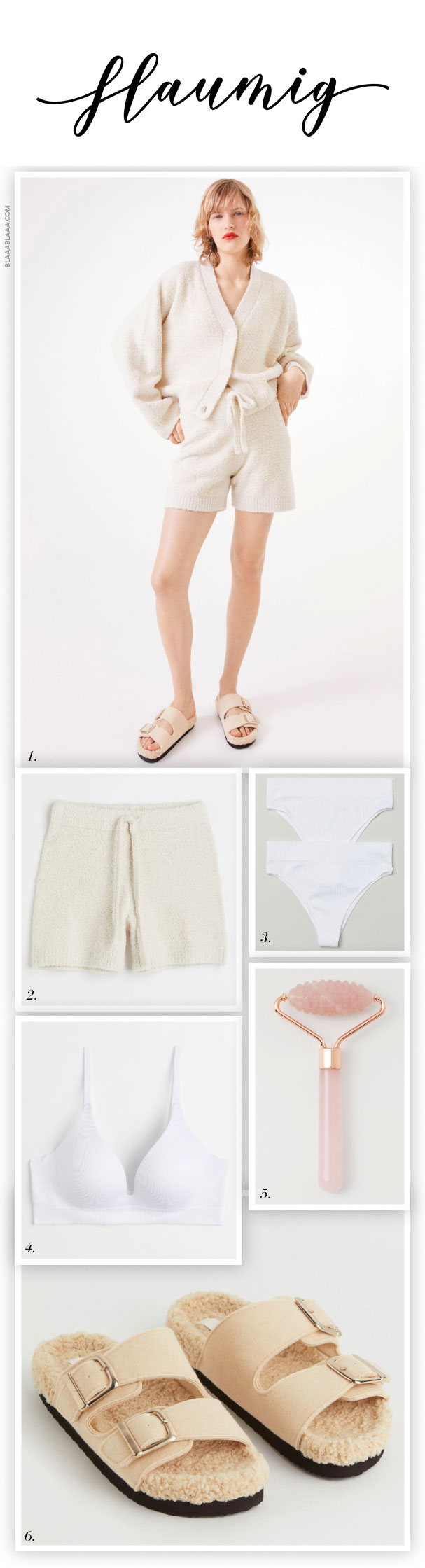 Yuppie, Schatz, mit dem kastig flauschigen Cardigan und den Shorts aus flauschigem Strick von H&M (siehe Nr. 1 & 2) schwebst du in Richtung Kuschel-Wochenende!