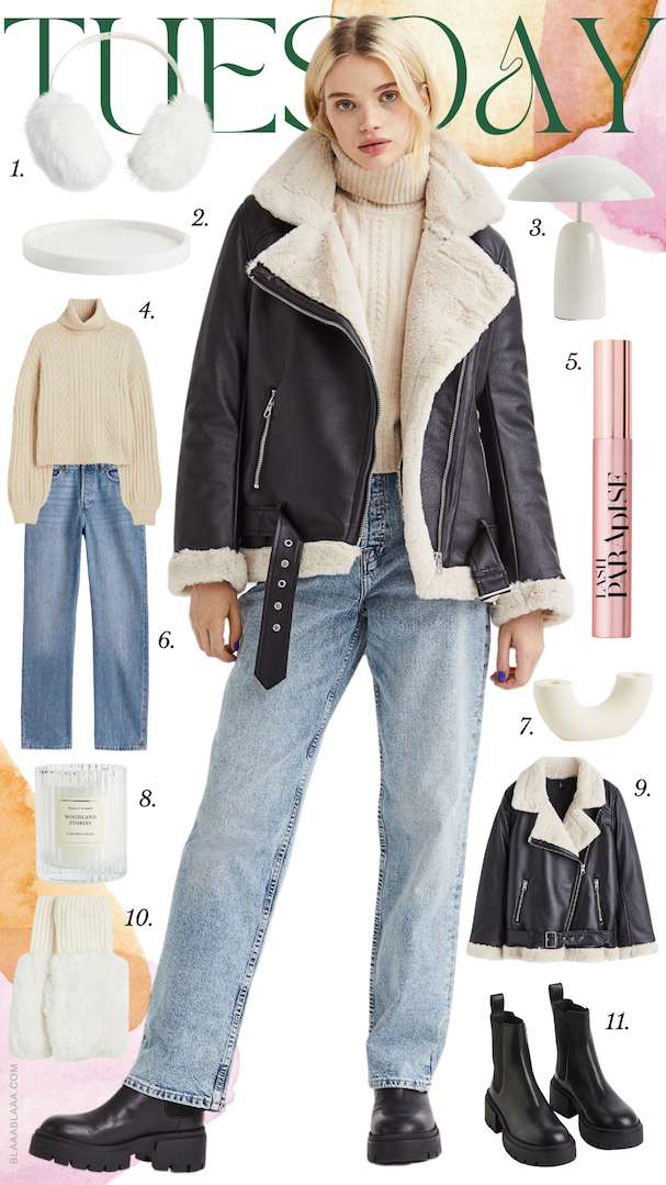 Et voilà, Schatz, in der Bikerjacke aus weichem, flauschigem Stoff von H&M (siehe Nr. 9) machst du’s dir heute so richtig gemütlich!