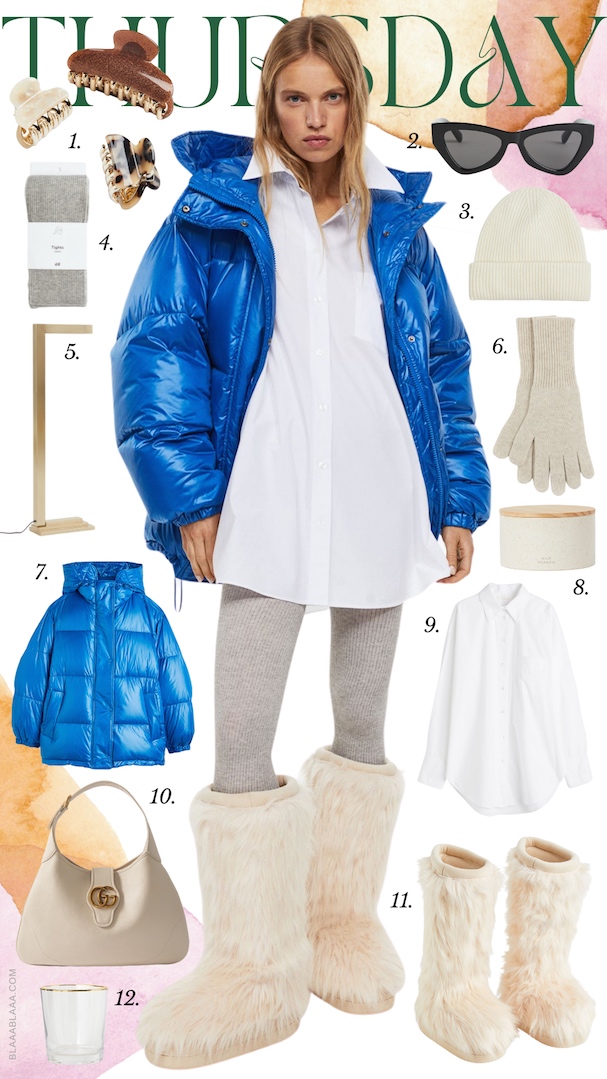 Yup, Schatz, mit der Oversized-Puffer-Jacket und der Oversized-Baumwollbluse von H&M (siehe Nr. 6 & 8) hast du heute deinen grossen Auftritt!