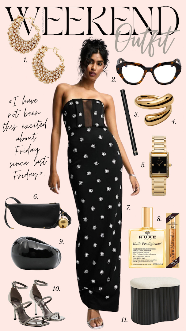 - ASOS DESIGN – Bandeau Embellished Midaxi Dress In Black [Get It Here!]