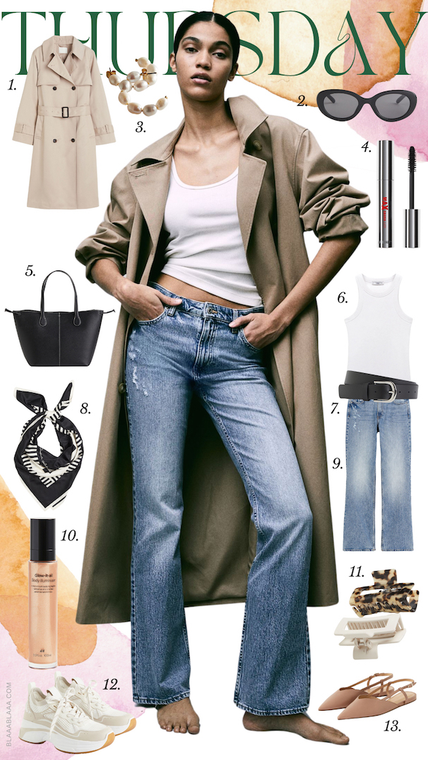 Yabba, Schatz, mit dem zweireihigen Trenchcoat aus Twill (siehe Nr. 1) geht’s entspannt durch den Donnerstagmorgen!