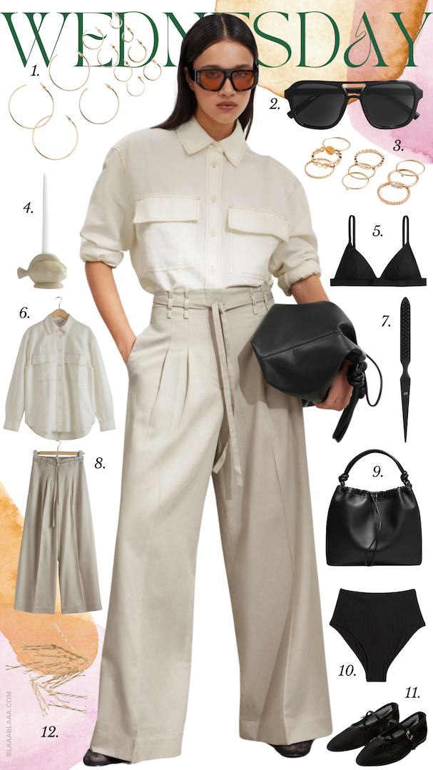 Yazzz, Schatz, mit der weiten Hose mit Gürtel und dem Utility-Hemd mit Oversized-Passform (siehe Nr. 6 & 8) geht’s in Übergrösse durch den Mittwoch.
