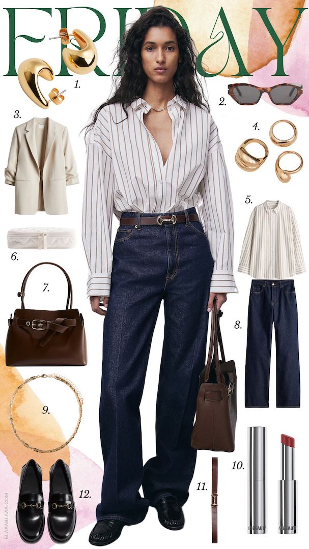 Well, Schatz, mit der gestreiften Hemdbluse aus Baumwollpopeline (siehe Nr. 5) geht’s locker leicht ins Wochenende!