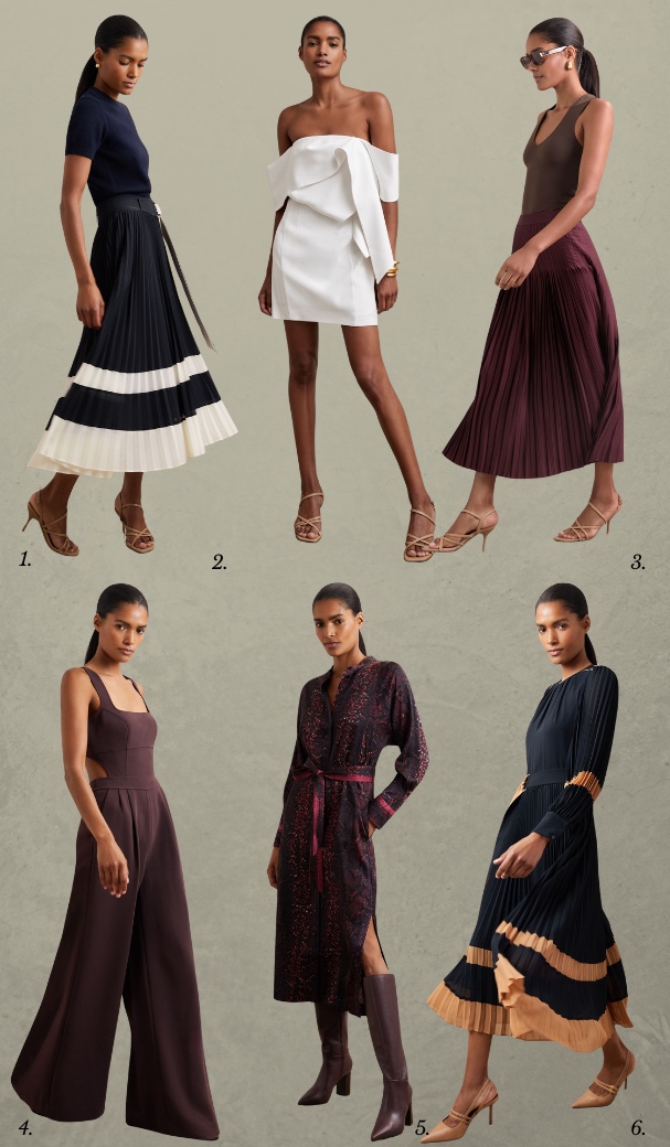 - Reiss – Tori Colour-Block Pleated Midi Dress in Navy/Camel www.reiss.com